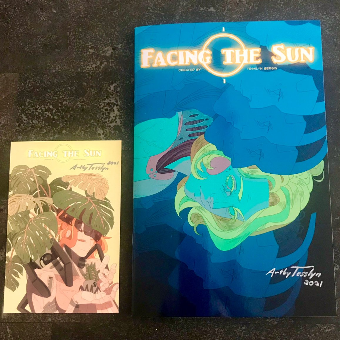 Issue #1 of my original comic series "Facing the Sun". Full-color. Laminated gloss cover. 38 coated pages. Signed on inside page. This issue covers the first chapter of the series.